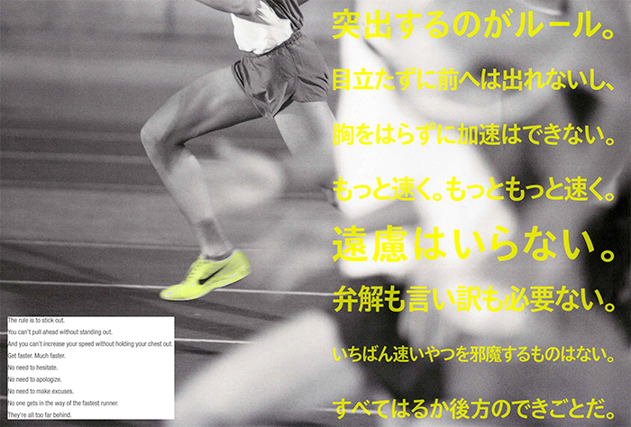 大胆に速くなる。競技者用ランニングシューズについてナイキの視点を打ち立てるキャンペーン。